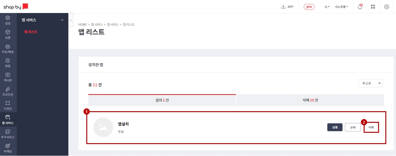 shopby 솔루션 어드민에 1) 앱이 설치되거나 2) 설치된 앱이 삭제됐을 때